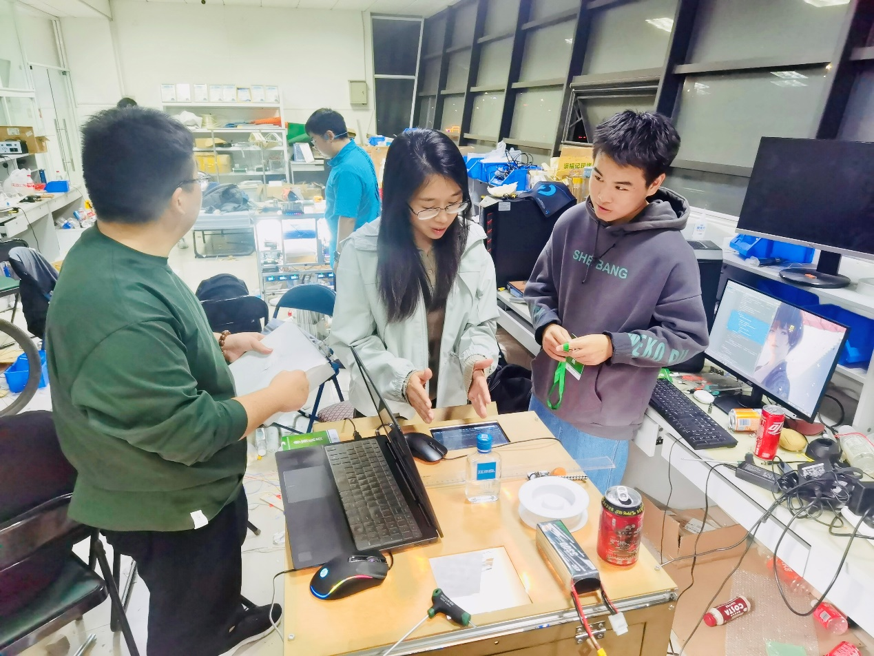 在社团管理工作中,同样能看到赵子峥老师尽心竭力的身影。2023年,山东大学学生玩转无人机社团筹备参加一场重要的国际赛事,却在无人机编队控制技术上遭遇瓶颈,成员们尝试了多种方案都未能解决,士气低落。赵子峥得知后,第一时间组织社团骨干与实验室的技术团队开会研讨。她带领大家查阅海量文献,与企业工程师沟通请教,连续一周泡在实验室,和学生们一起调试程序、优化算法。经过无数次的失败与改进,终于攻克技术难题。比赛现场,无人机编队以精准的动作、绚丽的灯光惊艳全场,斩获佳绩。那一刻,社团成员们紧紧围住赵子峥,眼中满是感激,是她用坚持与智慧,带领大家冲破困境。